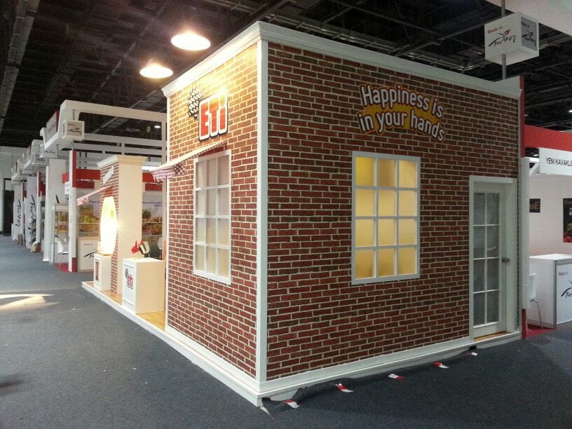 At Gulfood 2014, Quattro Stand created a Dubai, UAE Gulfood booth design for ETİ, a leading FMCG brand from Turkey. The 28 m² space was transformed into a functional and inviting environment that reflected the brand’s bakery-inspired identity while meeting all technical requirements of the Dubai World Trade Centre (DWTC). Delivered as a complete turnkey service, the project included design, fabrication, installation, logistics, and on-site technical support.