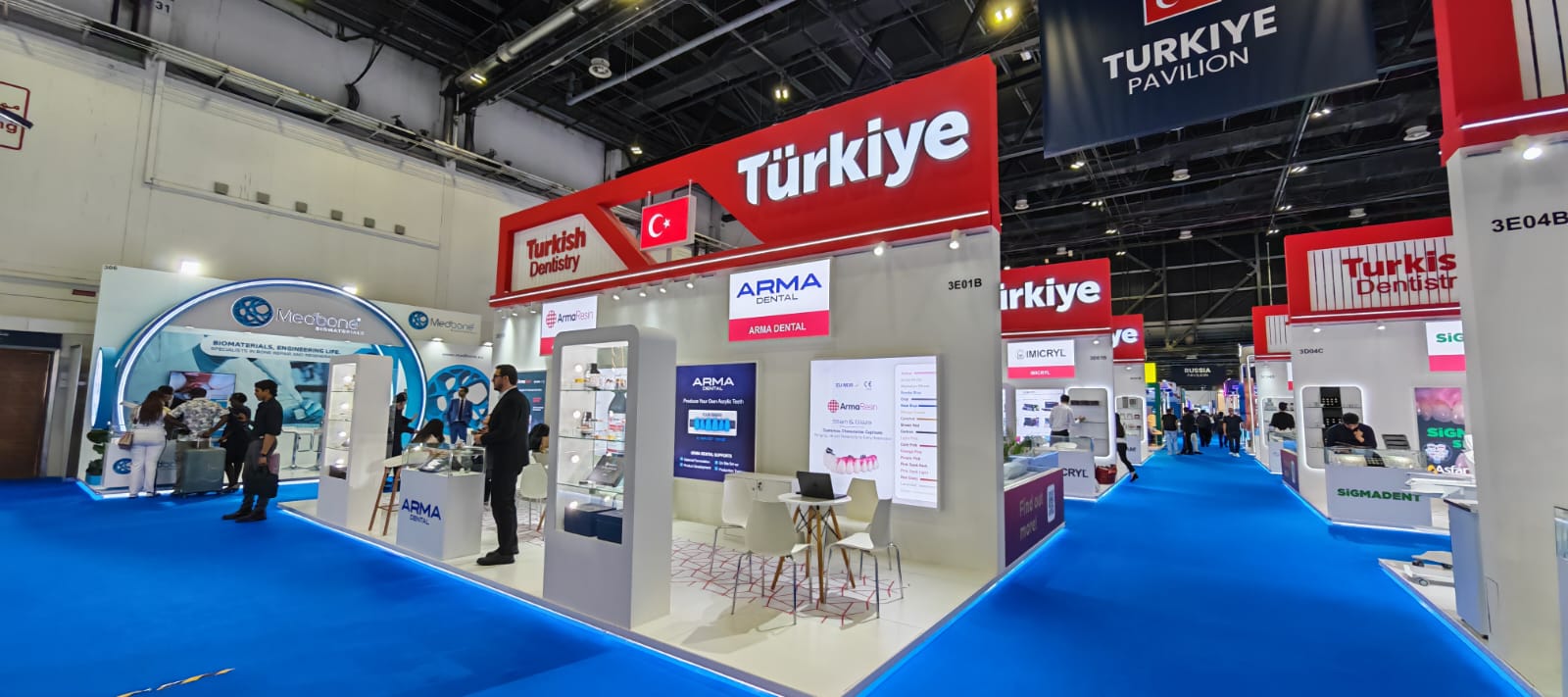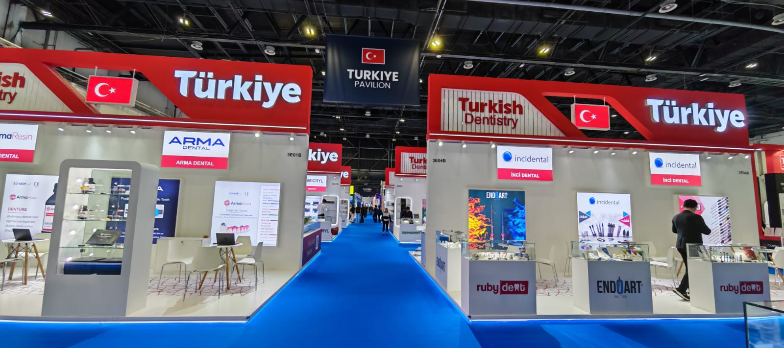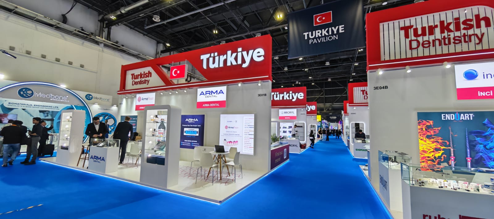 Positioned as the Turkish dentistry pavilion AEEDC, the pavilion emphasized sectoral strength, export capability and coordinated national branding. As part of a Turkey national pavilion Dubai exhibition, the project required strict adherence to official guidelines, unified visual language and controlled visitor flow across all participating exhibitors.