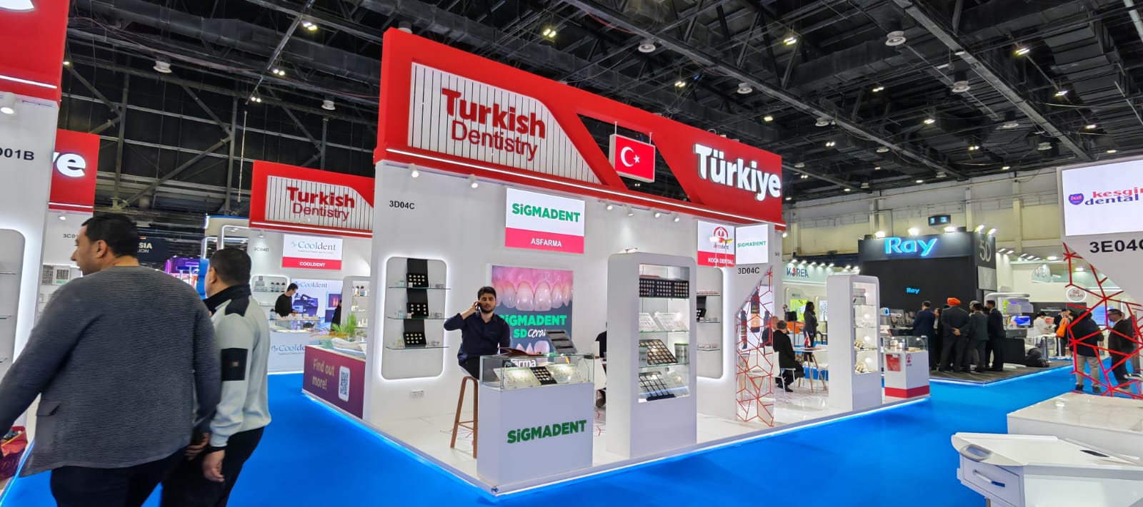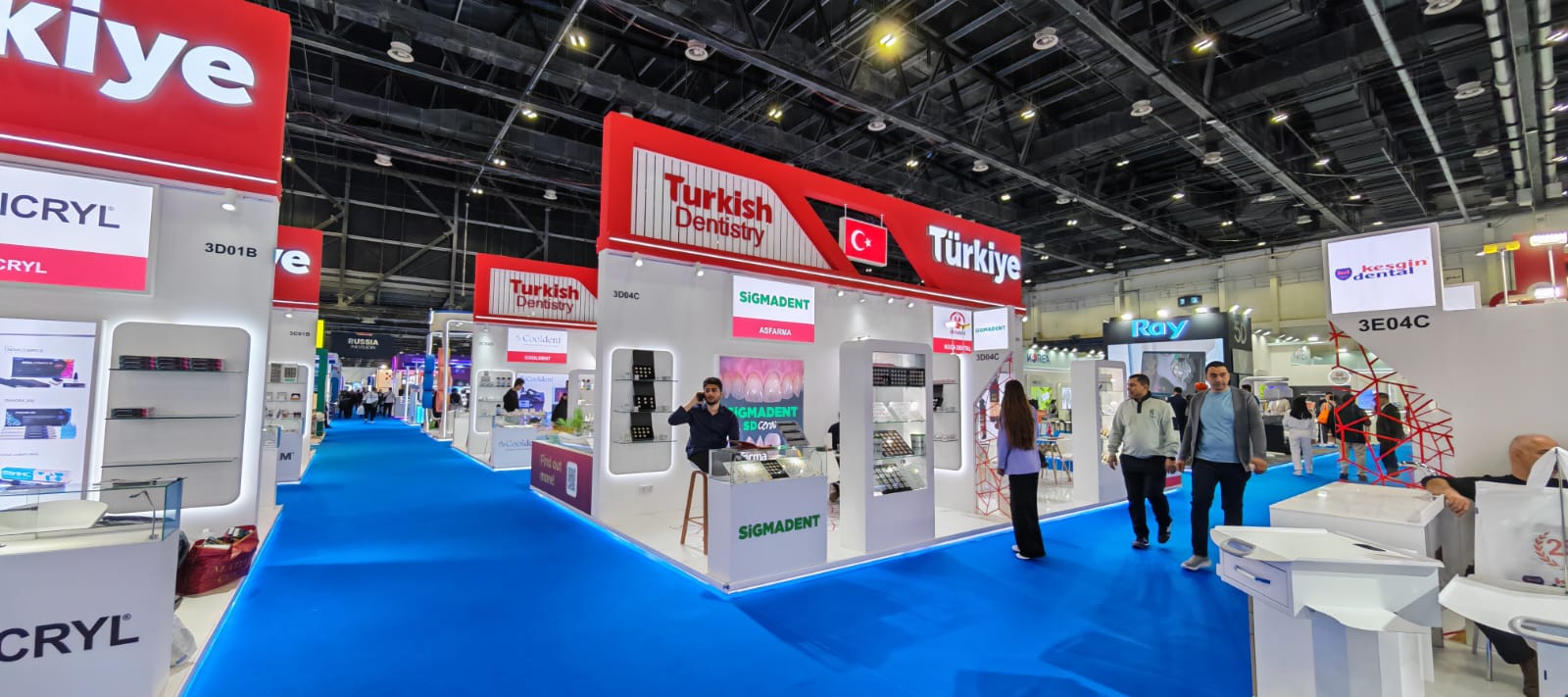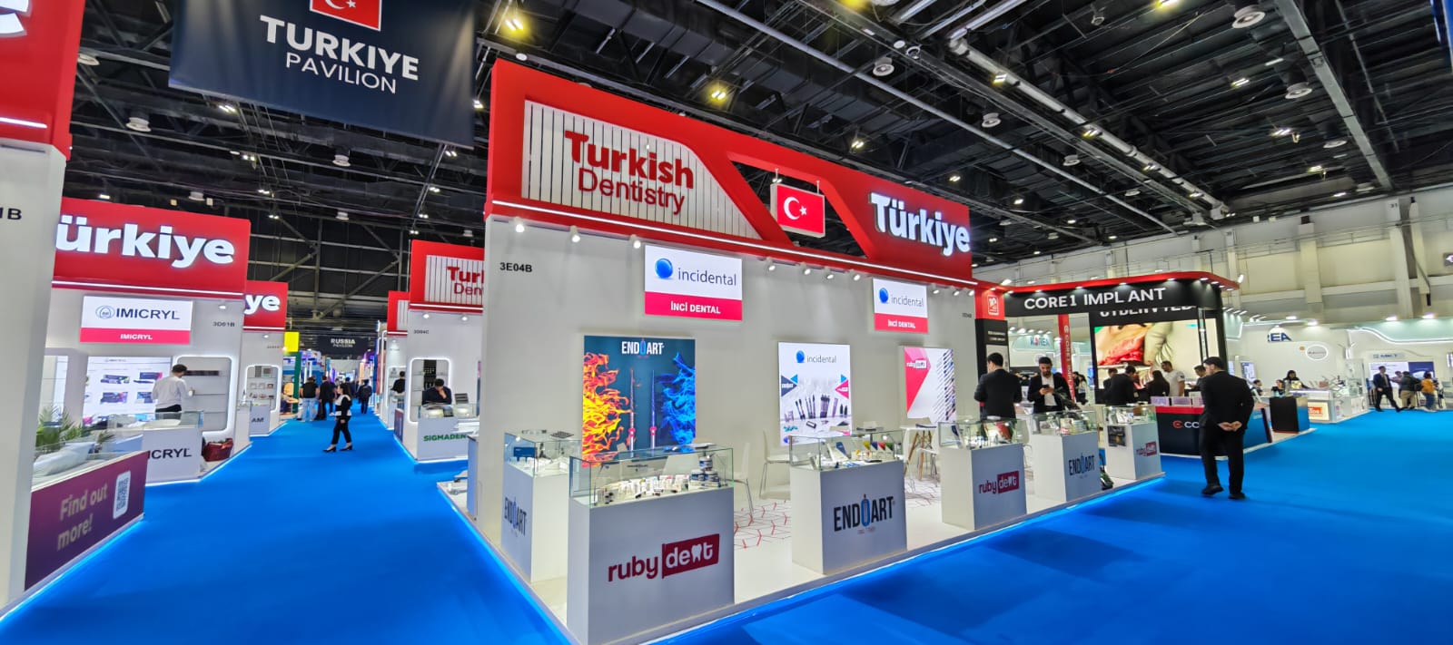 This project was delivered as an AEEDC Dubai exhibition stand designed to represent Turkey’s dental industry under a unified national pavilion concept. Executed for IKMIB, the pavilion functioned as a central exhibition hub, bringing together multiple brands within a single AEEDC Dubai pavilion stand structure tailored to high visitor circulation and international visibility, supported by our exhibition stand fabrication in Dubai capabilities.